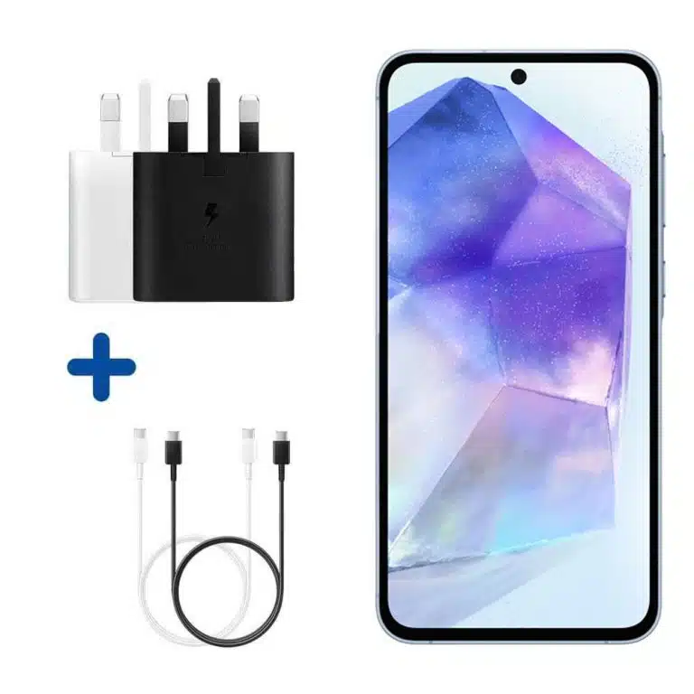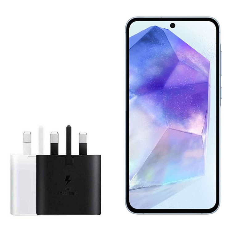 گوشی A55 سامسونگ با پردازنده Exynos 1480 و باتری ۵۰۰۰ ملی آمپری با شارژر ۲۵ وات سامسونگ سازگار است.شارژر ۲۵ واتی سامسونگ از نسل شارژرهای سوپر فست یا همان فوق سریع سامسونگ بوده که در این گوشی میتواند مورد استفاده قرار بگیرد.شارژر سوپر فست سامسونگ گلکسی A55 از شدت جریان ۳ آمپر در حالت عادی و ۵ آمپر در حالت شارژ سریع با ولتاژ ورودی ۱۰۰ تا ۲۴۰ ولت پشتیبانی مینماید.
