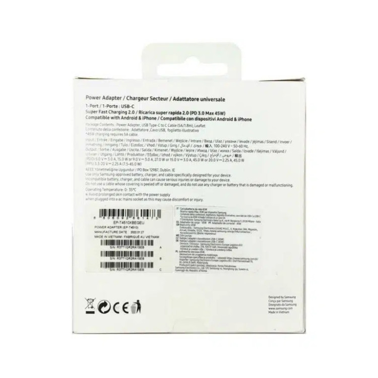 مشخصات شارژر ۴۵ واتی S22 پلاس