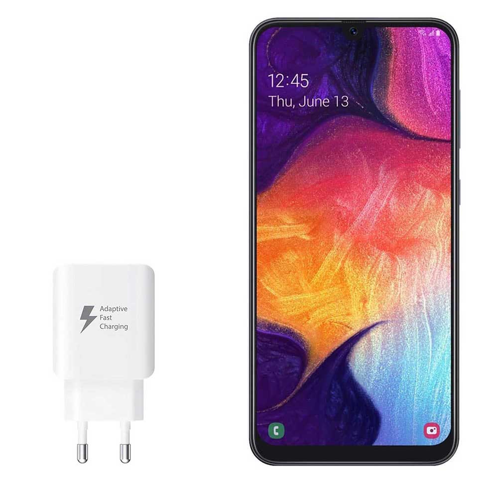 شارژر گوشی A50 در ۲ مدل دو پین (پین ایرانی) و ۳ پین ساخته شده است. شما این امکان را دارید که با توجه به تجربه استفاده از هر کدام از این شارژرها، یک مدل را برای خرید انتخاب کنید. از نظر عملکرد و سرعت شارژدهی این ۲ شارژر هیچ تفاوتی با هم ندارند.