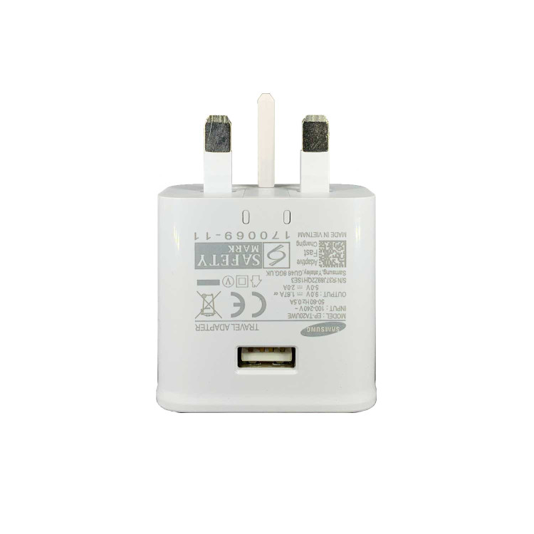 در این مدل یک درگاه خروجی USB وجود دارد که امکان اتصال و شارژ انواع گوشیها و تبلتها را برای شما فراهم میکند. هنگام خرید حتما به مدل شارژر Samsung EP-TA20EWE توجه کنید مخصوصا شدت جریان شارژر، زیرا اگر شدت جریان شارژر اصلی گوشی شما ۱٫۵ آمپر باشد و شما از شارژر سامسونگ ۲ آمپر برای شارژ آن استفاده کنید اگرچه گوشی شما را سریع تر شارژ میکند اما بعد از مدتی باتری به مرور باد کرده و از بین میرود.