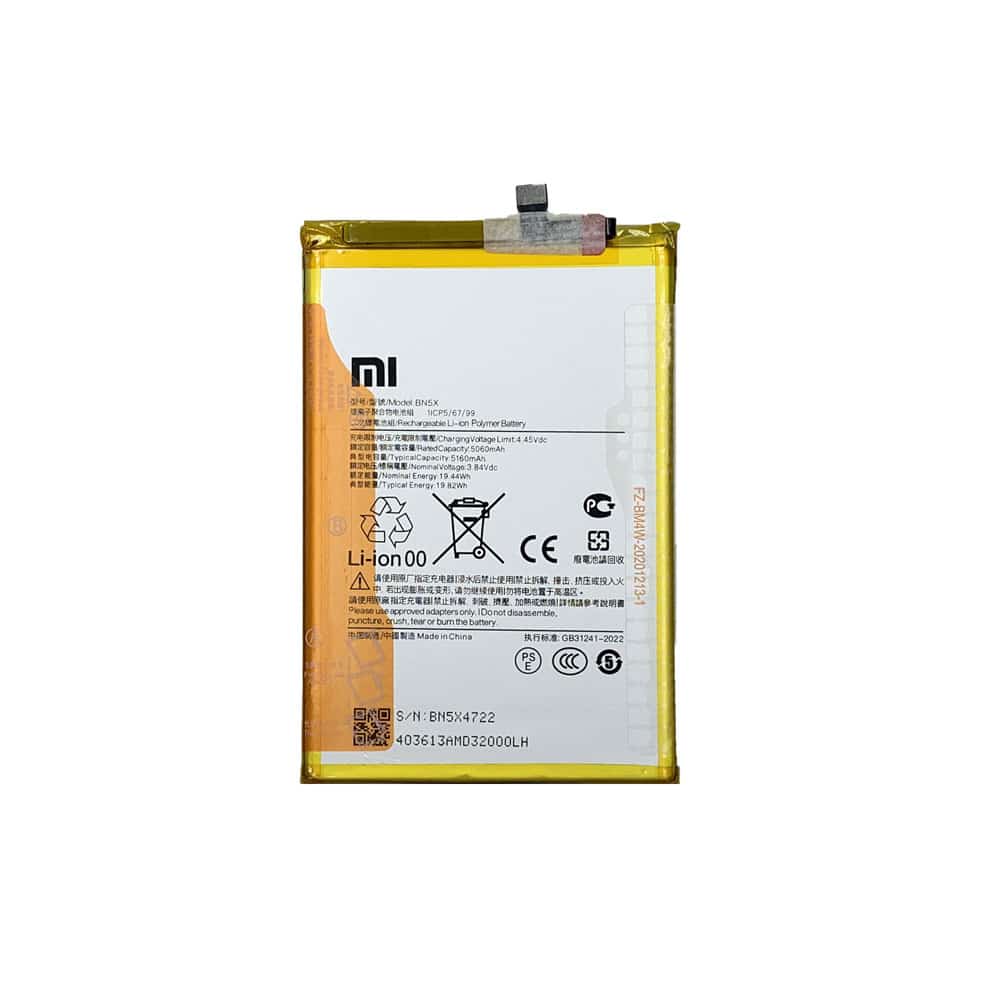 باتری BN5X از نوع لیتیوم-یون-پلیمری است. این نوع باتریها به دلیل ظرفیت مناسب، طول عمر بالا و امکان شارژ سریع، در گوشیهای میانرده و پرطرفدار شیائومی بهکار گرفته میشوند. درعینحال، طراحی جمعوجور و مقاوم آن باعث شده است که در برابر ضربه و تغییرات دمایی پایداری بالایی داشته باشد.