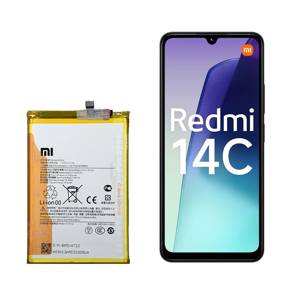 باتری BN5X در گوشی ردمی ۱۴C به صورت داخلی طراحی شده است و کاربر نمیتواند آن را مانند گوشیهای قدیمی با باز کردن درب پشتی تعویض کند. این موضوع باعث میشود، فرآیند تعویض باتری تخصصیتر و حساستر شود. برای جدا کردن این باتری ابتدا باید قاب پشتی دستگاه با ابزارهای مخصوص و با دقت زیاد باز شود. قاب با چسب قوی به بدنه متصل است و در صورت استفاده نادرست از ابزار، امکان شکستن آن یا آسیب به سایر قطعات وجود دارد. پس از باز شدن قاب، تعمیرکار باید کانکتور باتری را از برد اصلی جدا کند و باتری قدیمی را که با چسب به شاسی متصل است، با احتیاط خارج کند.