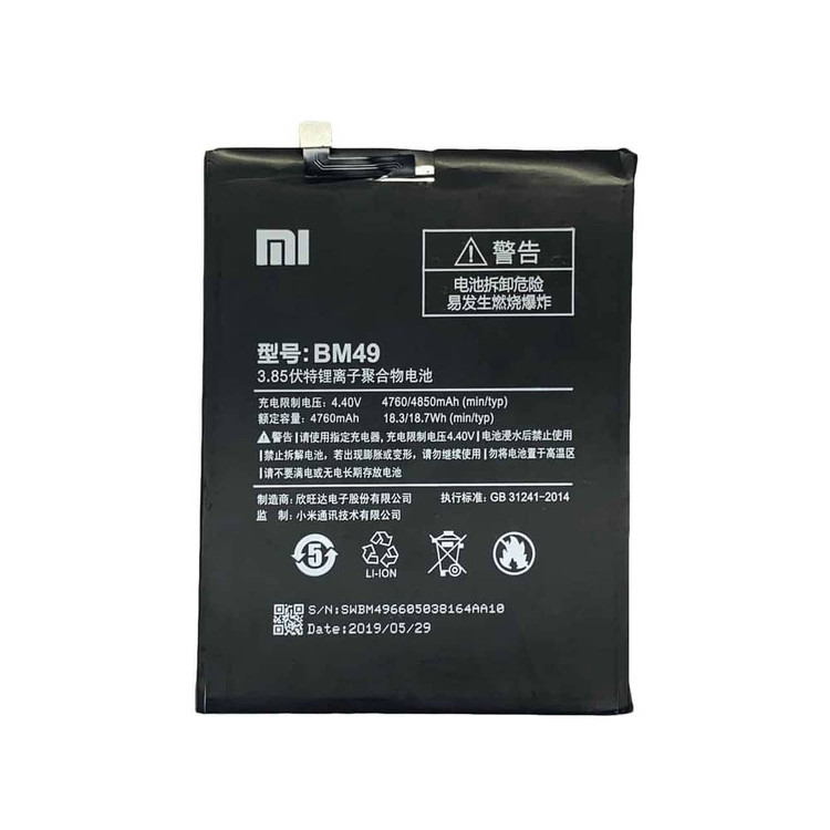 باتری شیائومی می مکس دارای ظرفیت ۴۸۵۰ میلی آمپری است که توسط کاربر قابل جابجایی نمیباشد. عمر باتری بسیار عالی است و تلفن با یک بار شارژ میتواند تا دو روز افزایش یابد.