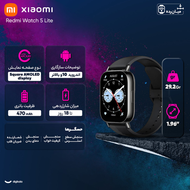 ساعت هوشمند شیائومی مدل Redmi Watch 5 Lite دارای قابلیت های قابلیت مکالمه از طریق بلوتوث بند سیلیکون