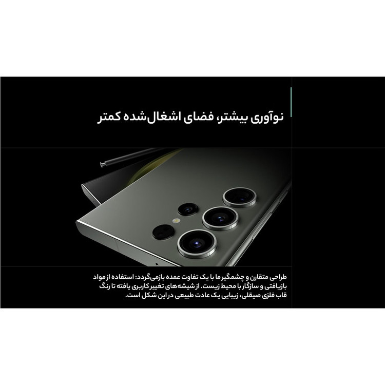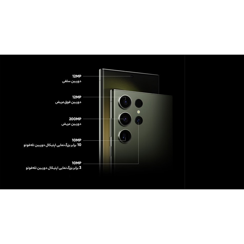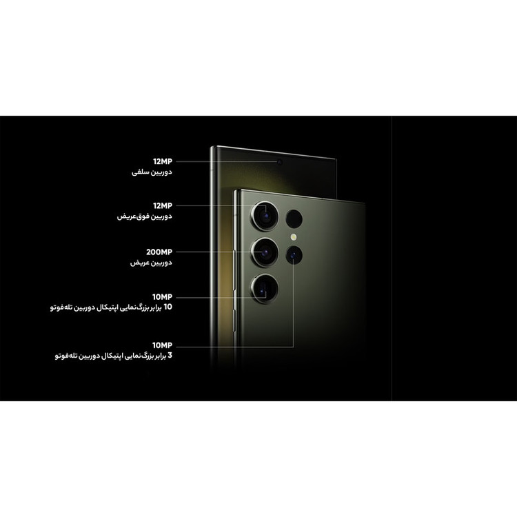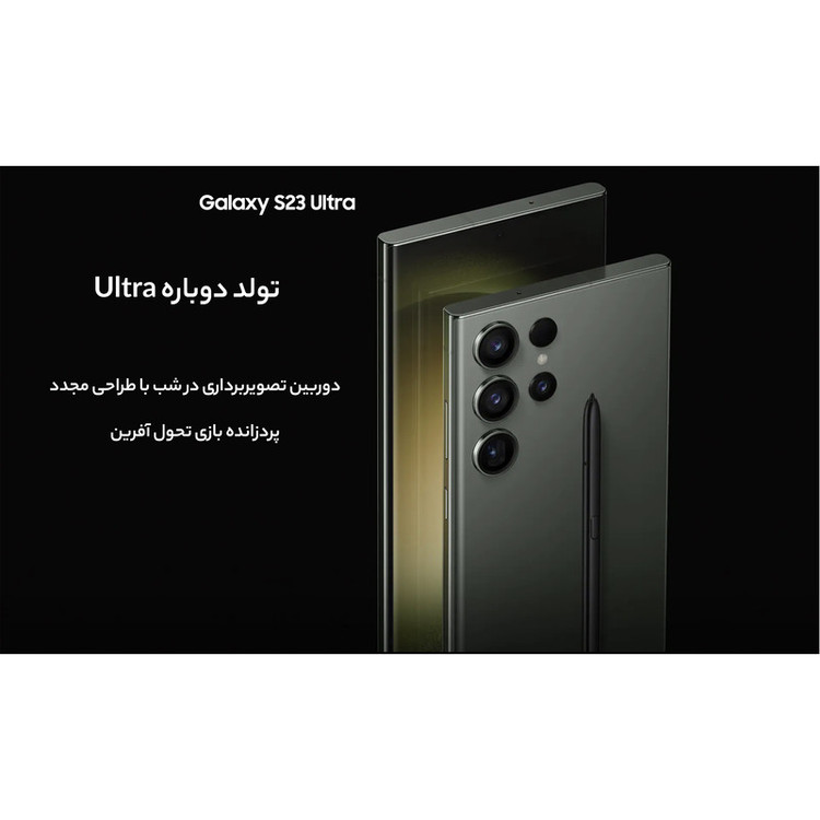 سامسونگ Galaxy S23 Ultra بهعنوان گل سرسبد گوشیهای هوشمند خانواده S23 با بهره بردن از مشخصات فنی قدرتمند معرفی شد. سامسونگ Galaxy S23 Ultra به نسبت نسل قبلی یعنی Galaxy S22 Ultra تغییرات زیادی نداشته و تقریبا هر دو گوشی از طراحی مشابهی بهره بردند. اما باید بدانید که Galaxy S23 Ultra به نسبت نسل قبلی، قدرتمندتر از همیشه وارد میدان رقابت شده است. در نمای روبهرویی این گوشی به صفحهنمایش شگفتانگیز با ابعاد 6.8 اینچ و رزولوشن 1440×3088 پیکسل از نوع Dynamic AMOLED 2X مجهز شده. از جمله قابلیتهای قدرتمند این صفحهنمایش میتوانیم به توانایی نمایش 501 پیکسل در هر اینچ، نرخ بروزرسانی 120 هرتز و حداکثر روشنایی 1750 نیت (nits) اشاره کنیم. تمام این مشخصات سبب شدهاند تا صفحهنمایش این گوشی، هرآنچه که از یک صفحهنمایش گوشی پرچمدار توقع دارید را برآورده کند. برای سنسورهای قسمت پشتی هم سامسونگ دست به تغییر جدیدی زد و این بار سنسور دوربین عریض با رزولوشن 200 مگاپیکسل را برای این گوشی هوشمند در نظر گرفت. سنسوری که بدون هیچ شکی توانایی ارائه عملکرد فوقالعادهای در نور روز و نور شب دارد. سنسور 10 مگاپیکسل از نوع پریسکوپتلهفوتو با توانایی زوم 10 برابری اپتیکال در کنار سنسور 10 مگاپیکسل از نوع تلهفوتو با قابلیت زوم 3 برابری اپتیکال و سنسور 12 مگاپیکسل از نوع فوق عریض (ultrawide)، دیگر سنسورهای دوربین قسمت پشتی این گوشی را تشکیل میدهند. سنسور دوربین عریض این گوشی توانایی ضبط ویدیو با حداکثر کیفیت 8K و سرعت 30 فریم در ثانیه را هم دارد. برای دوربین سلفی، سنسور با رزولوشن 12 مگاپیکسل در نظر گرفته شده که توانایی ضبط ویدیو با حداکثر کیفیت 4K و سرعت 60 فریم در ثانیه را دارد. حضور پردازنده قدرتمند اسنپدراگون 8 نسل دو شرکت کوالکام هم سبب شده تا سامسونگ Galaxy S23 Ultra بهراحتی هرچه تمامتر از پس اجرای بازیهای سنگین و باگرافیک بالا بربیاید. باتری با میزان ظرفیت 5000 میلیآمپرساعت و پشتیبانی از فناوری شارژ سریع با توان 45 وات هم از دیگر مشخصات در نظر گرفته شده برای این گوشی هوشمند است. قلم هوشمند S-Pen هم با قابلیتهای جذاب این گوشی را همراهی میکند. این محصول بههمراه شارژر 25 وات سامسونگ به فروش میرسد که رنگ شارژر ارسالی ممکن است سفید یا مشکی باشد.