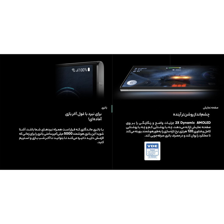 صفحهنمایش با نرخ بروزرسانی 120 هرتز / صفحهنمایش با حداکثر روشنایی 1750 نیت (nits) / سنسور دوربین عریض فوق قدرتمند / پردازنده قدرتمند / بههمراه شارژر 25 وات سامسونگ